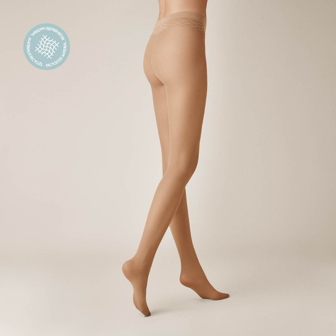 Nachhaltige Strumpfhose in gleichmäßiger Optik Die Damen Strumpfhose BLUE 30 besteht aus ECONYL Garn das komplett aus recycelten Materialien besteht. Dazu gehören unter anderem im Meer schwer abbaubare Materialien wie Fischernetze oder Teppiche. Damit ist die BLUE 30 mit schönem Netz-Muster im Nachrand ein Must-Have für alle die sich sowohl modisch als auch umweltbewusst kleiden möchten. Denn diese innovative Strumpfhose leistet nicht nur einen nachhaltigen Beitrag zum Schutz der Umwelt und zur Beseitigung von Wertstoffen aus den Weltmeeren sondern verleiht Ihren Beinen auch noch einen wunderschön ebenmäßigen Look. Semi-blickdicht und matt 47 denWäscheflachnaht um BaumwollzwickelHöschenteil mit Komfortbund und raffinierter Netz-Musterung im NachradStyling-Tipp: Umweltbewusst im Alltag – Zum Beispiel in Kombination mit Bleistiftrock und klassischer Bluse fürs Büro.
